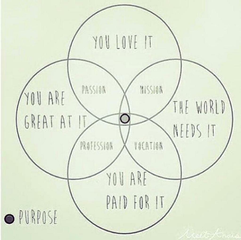 Passion is drive. If we do not have passion in what we do, then we may be filling someone else’s role. Passion cannot come without purpose, otherwise it is just a rudderless boat waiting for whatever wind will take your in whichever direction. Using the diagram above, we see how we need both. If they do not fit, we need to revisit what we are working towards.