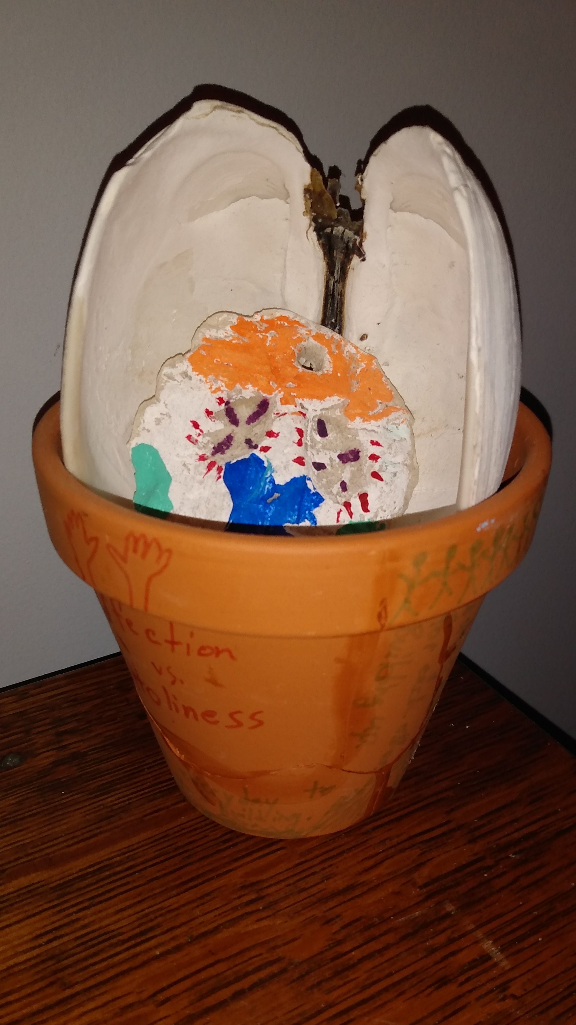 As part of the retreat, I had everyone go outside and break their terra cotta planter. We then collected the pieces for us throughout the weekend. The lesson was simple: